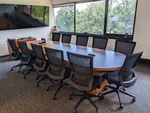 The other space we were asked to equip was a modern conference room for which we specified a 10 person meeting table with power boxes and eleven black mesh office chairs with adjustable arms to complete this high end office.
