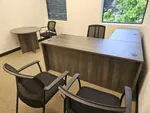 In addition to the cubicle workspace we furnished four private offices tailored to different needs. The first was an office for 2, featuring two L office desks, a round side table with chairs, and an office lounge area with additional seating. The second and third offices mirrored one another, each equipped with an L-shaped desk, a comfortable office chair for back-pain, and two guest chairs to accommodate visitors. The fourth office was designed as an executive workspace, incorporating a U-shaped office desk, a comfortable lounge chair for office, and a small meeting table, ensuring both function and sophistication in an executive office design.