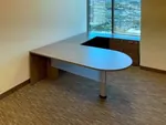 The executive office suites were tailored to provide a refined and functional workspace. Each of the five private offices was furnished with a spacious 6’ x 8’-6” U-shaped office desk workstation with peninsula desk, offering ample surface area for productivity. Storage solutions included a lateral unit with box box file and file file drawers and a 5-tier bookcase measuring 36”W x 15”D x 65”H. For added privacy and sophistication, each desk was equipped with a frosted modesty panel. To create a welcoming space for visitors, each office was completed with two guest office chairs alongside a mesh back task chair for the primary user.