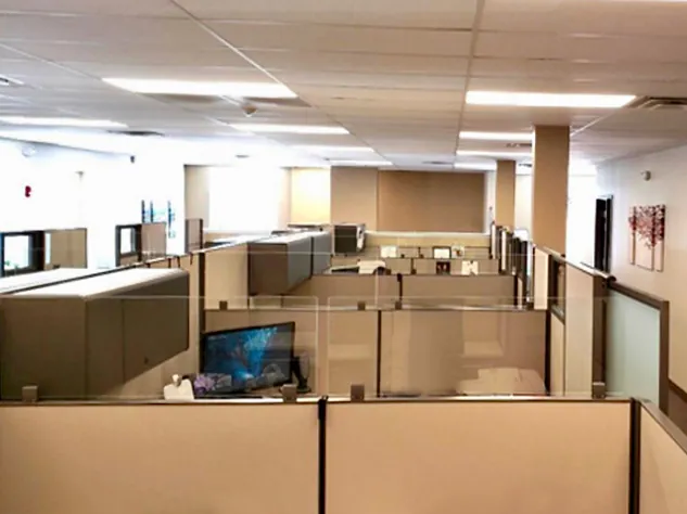 The office layout had eleven large 8’x8’ O2™ Corporate Office Furniture Workstations with a combination of 53”H and 67”H cubicle panels and wide open entrances to each desk area. To help mitigate pandemic spread we recommended a few changes to the cubicle configuration.