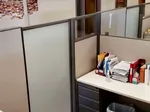 Finally, we clamped 14"H clear plexiglass dividers on top of all remaining 53”H workstation partitions. This has become a widely popular economical approach to adding workplace shields to existing furniture with the least amount of product and labor costs.