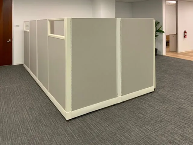 This client wanted to create a couple of small private offices in an open office area in their office space in California. We suggested our cubicles with doors that are not only practical, but also allow the possibility of creating privacy on demand, thanks to the door casters which allow the door to glide between open and closed, effortlessly.