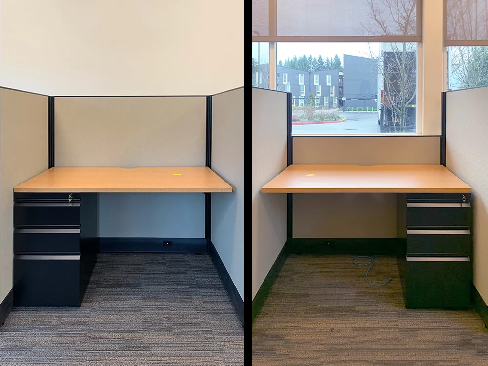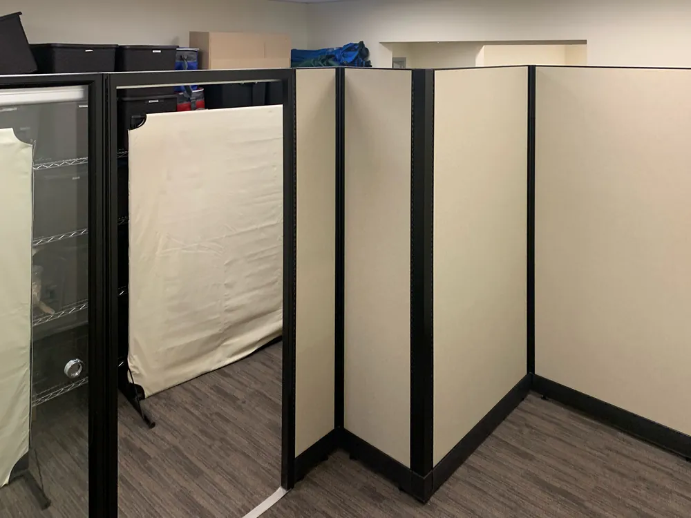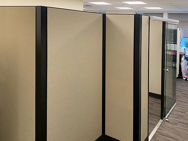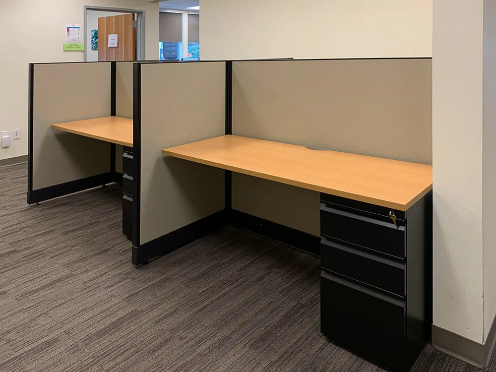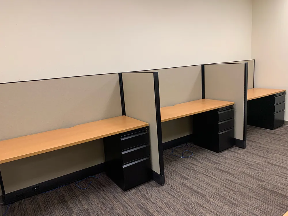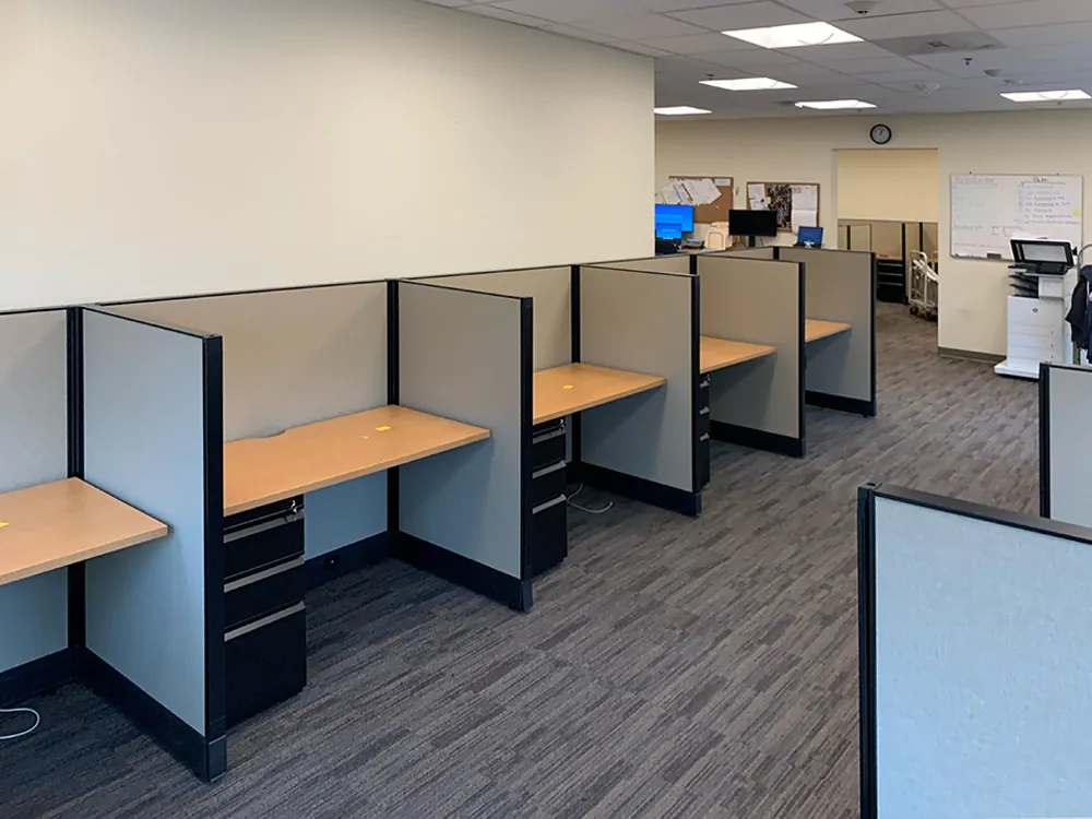 Our client needed a Washington office furniture supplier to furnish two open office spaces to fit a total of 20 call center cubicles, along with the creation of a private office featuring a cubicle sliding door.