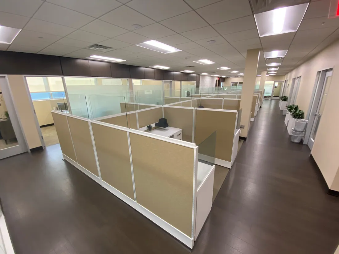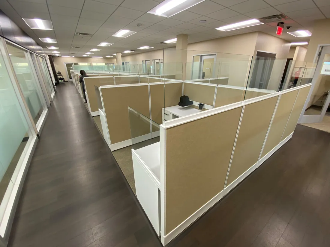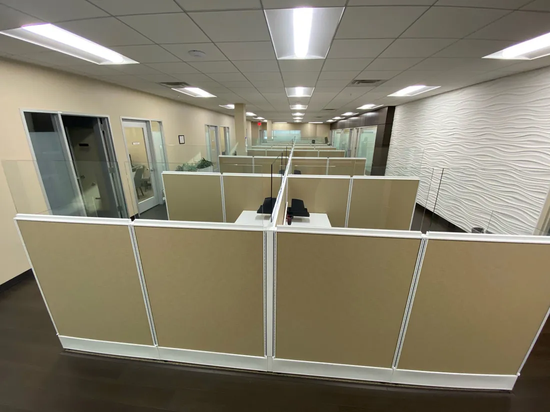 Then we created a new cubicle layout with the modern AIS Divi panel system. Clusters of 6 x 6 cubicles and 6 x 8 cubicles give each worker enough personal space for sufficient social distancing in the office.