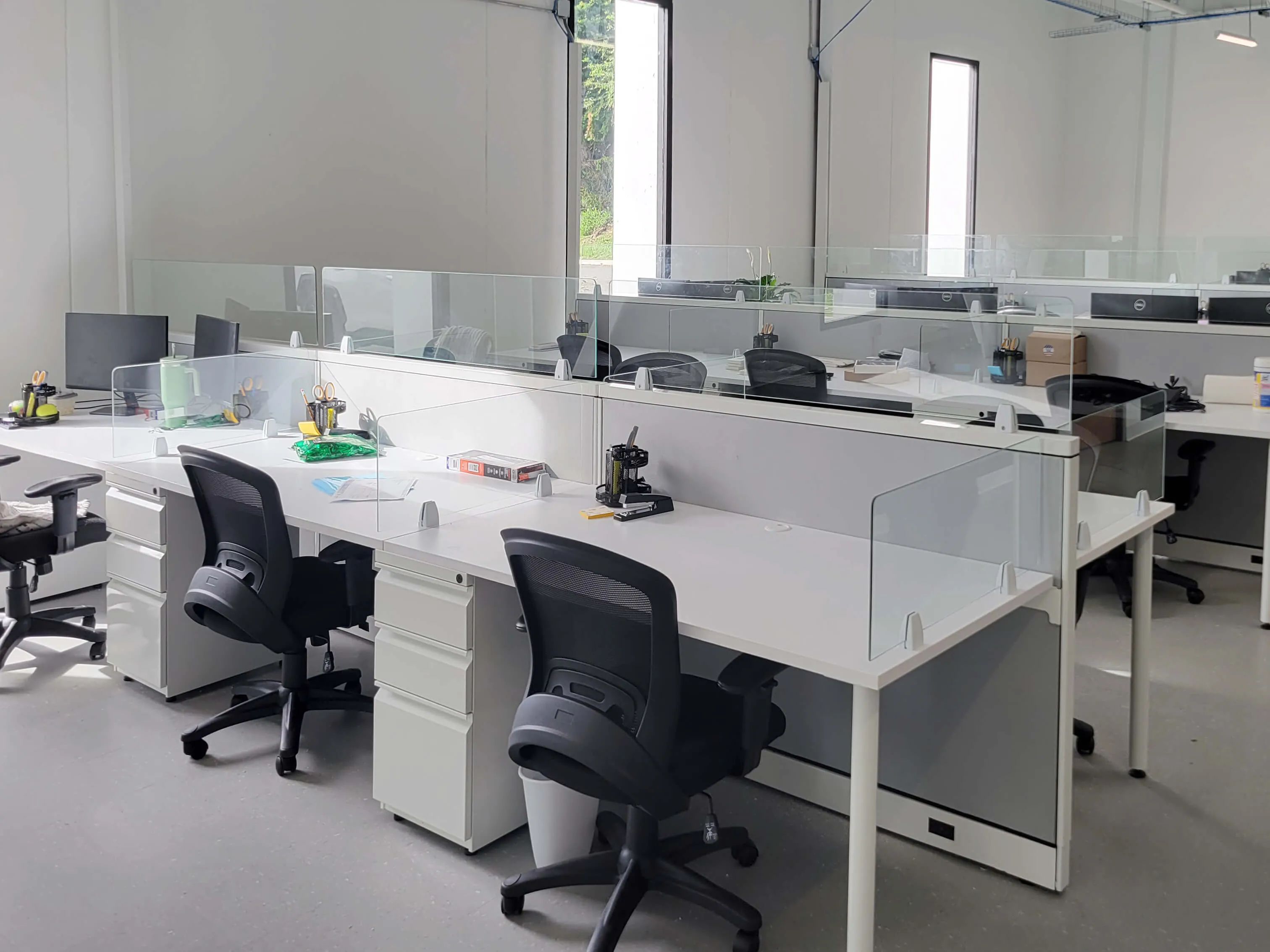 For this project we have installed our office furniture in Puerto Rico to create a functional workstation area within an open office space. The setup includes eighteen 5' x 2'-6" benching desks, striking a balance between collaboration and individual productivity. Each powered station is equipped with a box box file pedestal, as a convenient office storage solution. The powered elements seamlessly accommodate employees' technological needs, making the workspace both functional and efficient.
