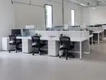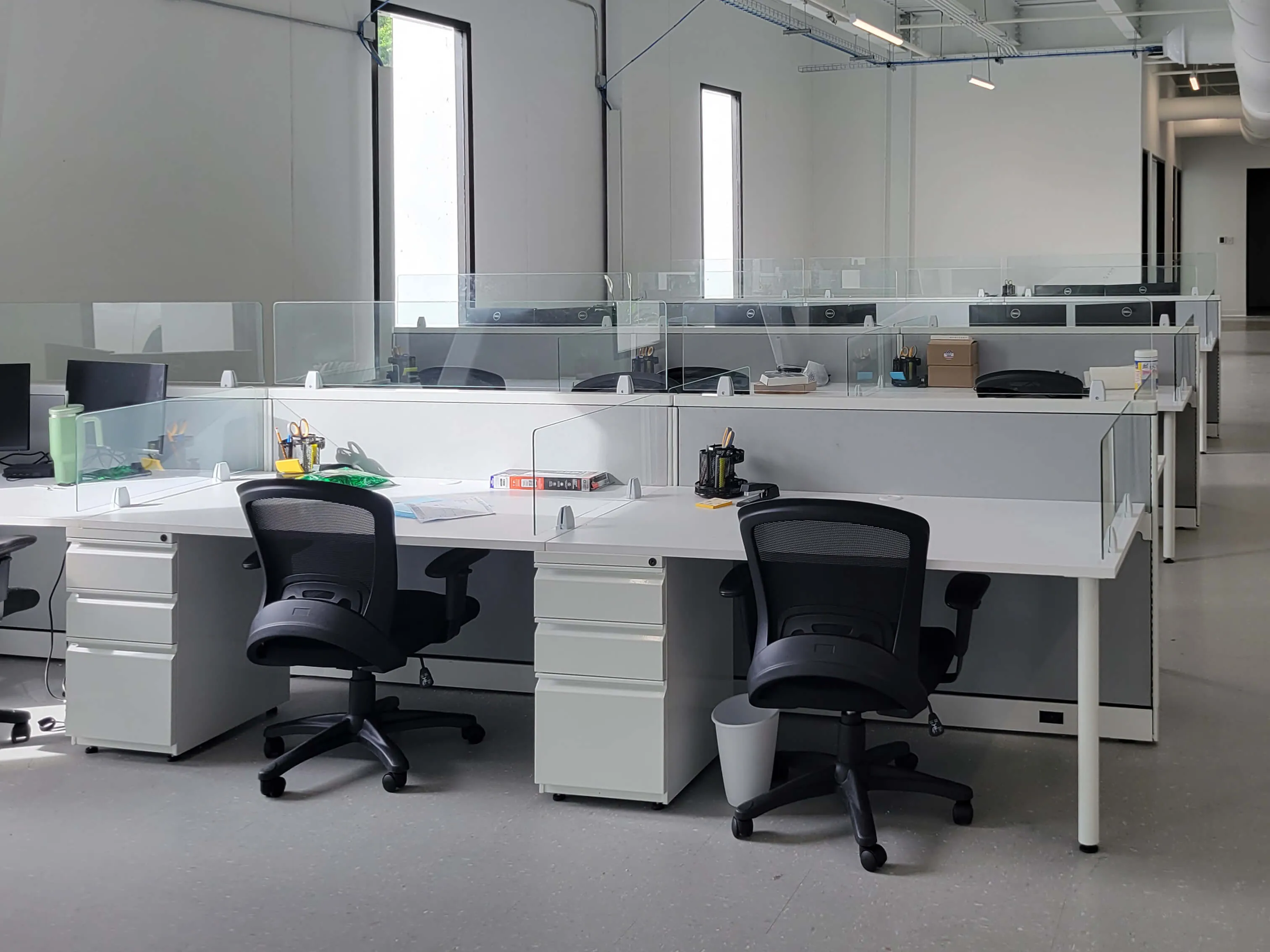 To provide added comfort for the workstation users, we also supplied 18 ergonomic task chairs, ensuring optimal support throughout the workday. This modern office space design skillfully blends an open environment with individual workstation privacy, fostering a dynamic and productive workplace.