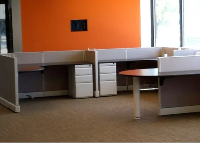 They wanted an open, collaborative office space. We constructed an office layout of bullpen cubicles for each team, which groups them together while providing clearly defined desk space for each person. Adding curved desktops to the U-shaped desk system in each bullpen office increases the usable desk area and delivers an office furniture solution that is softer on the eye.