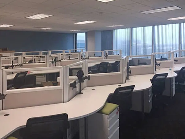This national repeat client needed office furniture in Dallas for a newly acquired office floor plan layout. They tasked our office interiors design team with creating a functional collaborative office space for their team of 30 employees in an open plan office to include private offices, conference rooms, a breakout area.