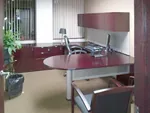 Our office designer specified cherry wood office furniture with silver & frosted glass accents to keep design continuity throughout the company’s corporate office space. The affordably elegant Jade range of quick ship office furniture was the perfect solution to meet the client’s office aesthetics and tight project deadline.