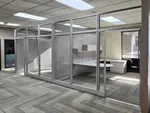 To achieve this, we installed our high-quality modular office walls, which allowed for seamless integration of four private office areas within the existing open plan office space. The office facades were built using glass office panels with additional glass stacking panels, promoting transparency and natural light flow. For enhanced acoustics and privacy, the side walls were constructed using grey cubicle walls, ensuring a balanced mix of openness and sound control. Each office was fitted with a solid office door, ensuring privacy while maintaining a modern, professional aesthetic.