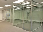 Our demountable glass wall system integrates concealed electrical and data cabling wherever needed. We simply tie into the building power from an access point in the floor, wall, or ceiling, and route it through the aluminum channels on the free-standing glass wall using UL listed Byrne electrical components.