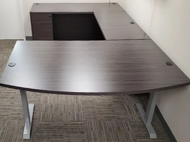 The spacious offices, each accommodate a large U-Shaped executive office desk set with a height adjustable office desk. This type of office desk setup fosters a healthier ergonomic desk posture by accommodating the user in both a sitting or standing position, and even in between variations. If you’re wondering about how to adjust desk height for your specific needs; it couldn’t be easier: these customizable office desks come with a handy desk remote control to take you from sitting to standing, in just a few seconds!