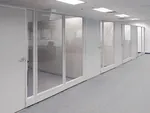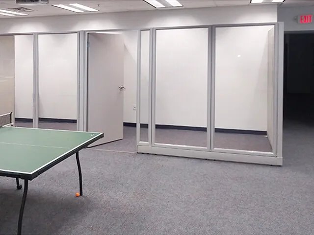 We used our modular office panels to create private office spaces with different configurations: single office or a row of rooms with glass office partition walls.