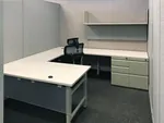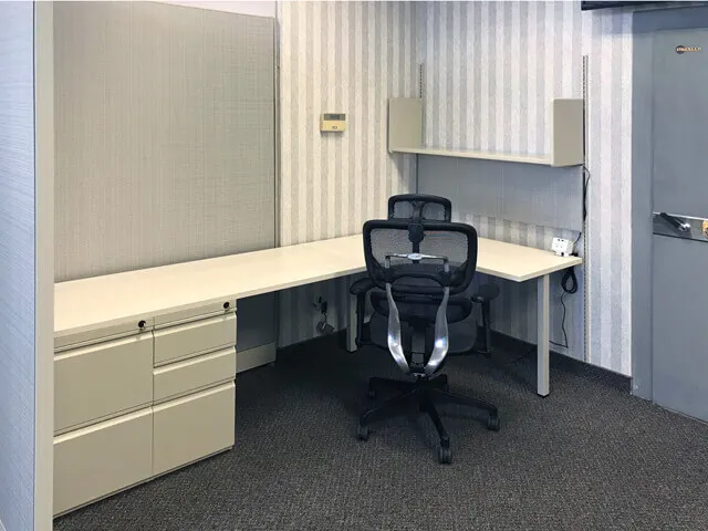 Finally, to customize these private office designs, we included tackboards and cubicle shelves as desk accessories, and to make those long workdays much more comfortable, ergonomic seating high back mesh office chairs with headrests were provided to all users.