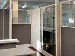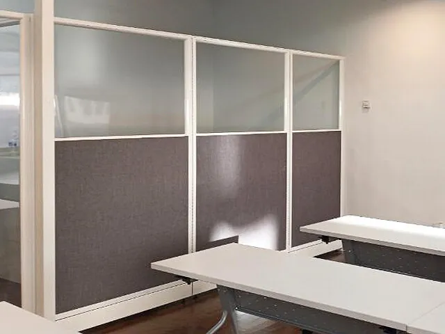 For their office space in Chicago, they came to us looking to add an office training room to their office layou. The solution had to keep the training area separate from the equipment zone and office pantry area. Our office interior design team provided a modular wall system that is affordable, reusable, and easy to mount. The modular office walls used in this project are 85” high and have partially glazed stacker panels to facilitate the flow of sunlight, filling up the office space.