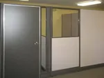 The client wanted a simple, practical, neutral color scheme befitting of a law office environment. We specified cream office panels with grey office doors and trim paint.