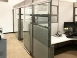 This office layout design is exemplary of the remarkable versatility of modular office walls and their components. These new private offices exude the perfect combination of practicality, modern design, functionality, and optimization of the office space available.