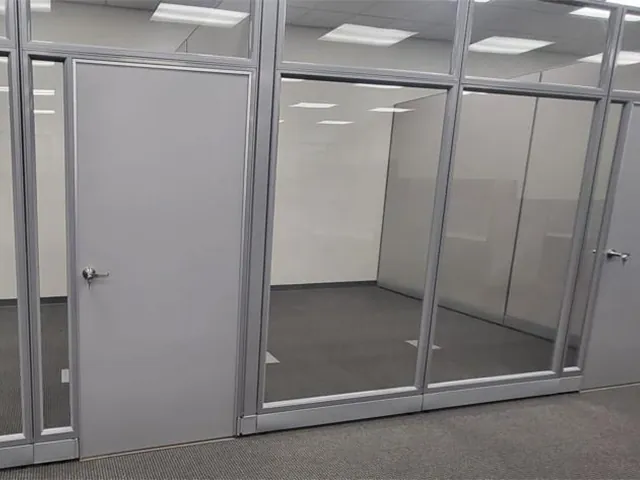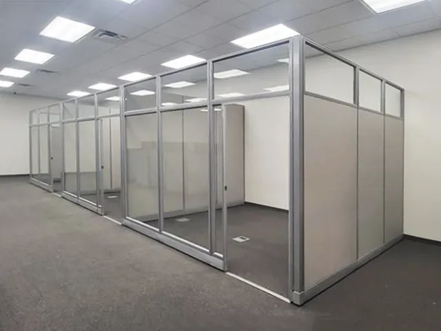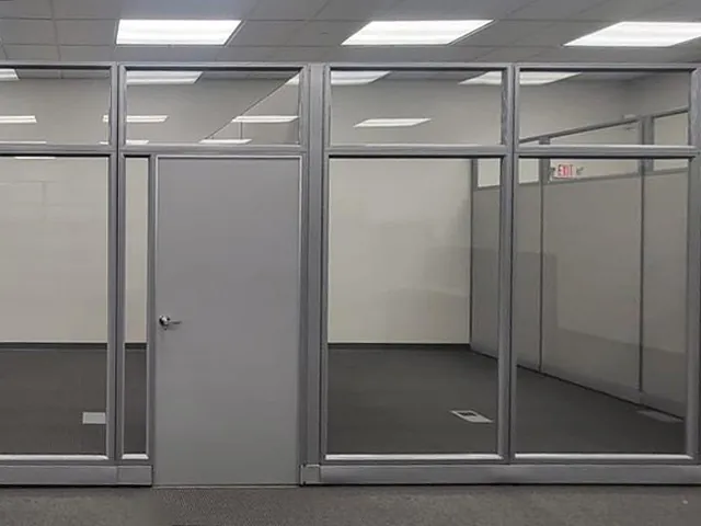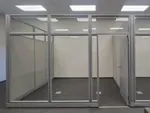 Our proficient office space planning team suggested the utilization of our incredibly versatile and affordable modular wall system, which was strategically arranged to create three offices along one wall and three adjacent offices on the opposite side. The facades were constructed with our modular glass office wall system, resulting in a sleek, modern aesthetic and allowing light to flow through the office space, while maintaining a physical separation between workspaces.