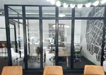 Finally, the trendy, black framed glass adds to the sophistication of the interior design and perfectly complements the style and identity of this office.