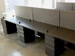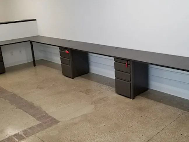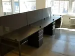 We listened to the company's goals for their NYC office and provided a thoughtful space plan that satisfies the interactive workflow needs of their 12 employees in an open area, a custom fit wall-to-wall workspace for their 4 temporary personnel, and custom-sized office furniture desks for the small private offices, all in matching finishes.