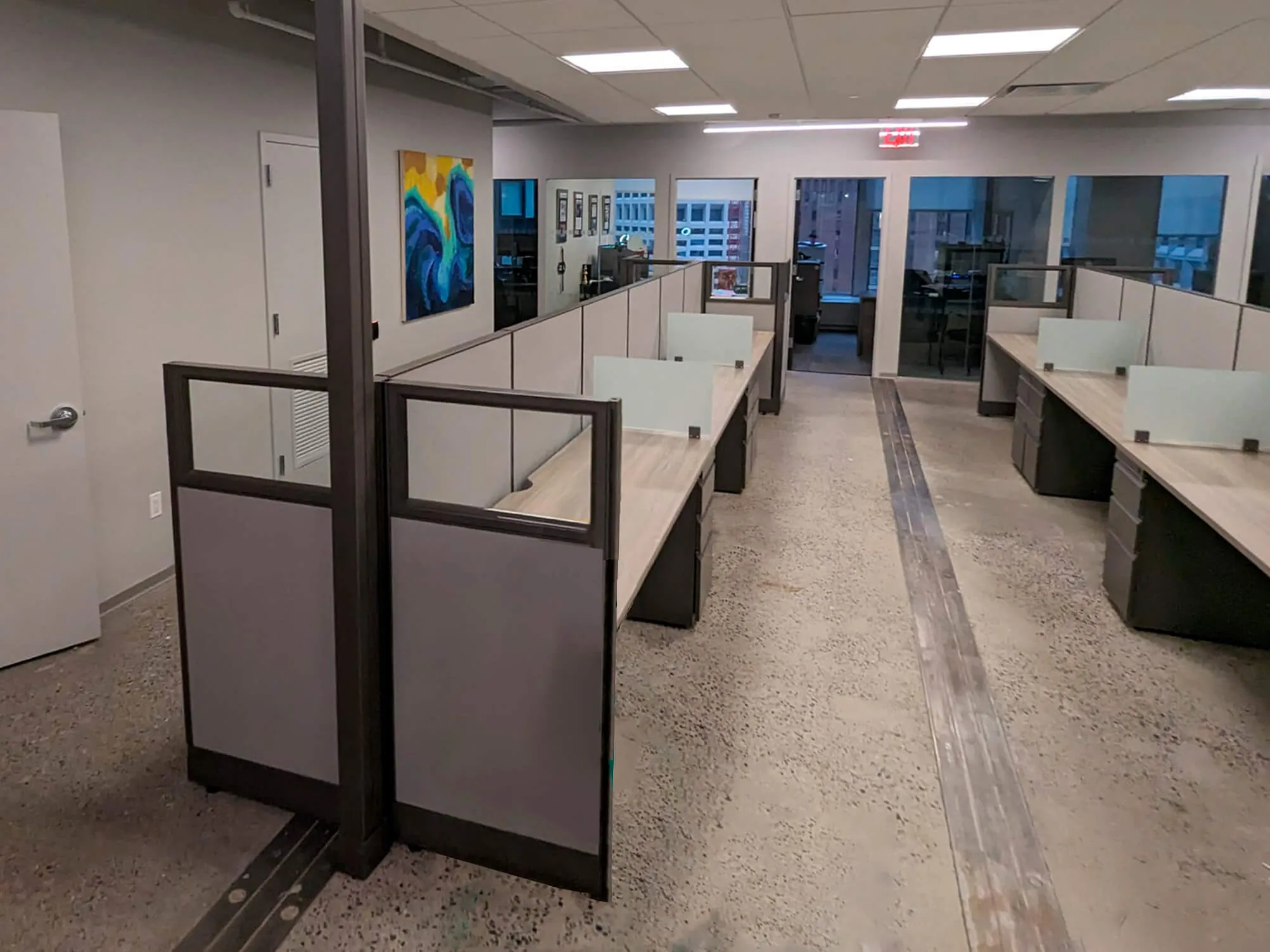 In summary, this reconfiguration project successfully transformed the office into a more collaborative, efficient, and visually appealing environment. The open workspaces encourage teamwork and flexibility, while the private offices are tailored for productivity and versatility.