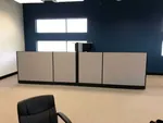 Using the dynamic O2™ Office Furniture System we configured five 8 x 8 cubicles which fit the size of the office floor nicely and provide ample desk space. 67” high cubicle walls provide adequate privacy between co-workers and a place for hanging cubicle wall-mounted storage. Slightly lower 53” cubicle panels face the entry & reception area. They’re low enough to interact with others from a standing position yet provide sufficient privacy for individual focus work when seated.
