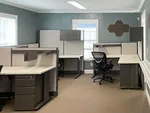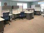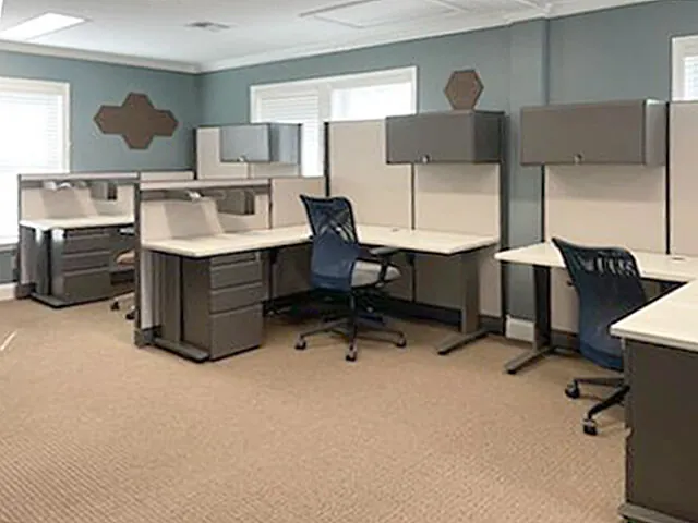 In keeping with their stylish and modern aesthetics, Montage Palmetto Bluff opted for L shaped cubicles with fabric office panels that enhance their existing serene office color scheme in an open plan area inside their South Carolina office space.