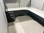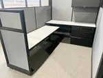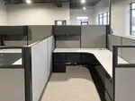 The client opted for a modern color scheme of grey cubicles with black trims to compliment their existing office color scheme resulting in an incredibly cohesive and inviting interior design for their office space in Michigan.