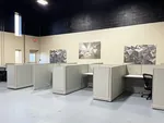 Our office space planners designed a layout comprising of 12 L shaped cubicles. These open plan workstations offer a spacious desktop and feature low cubicle walls for a collaborative office that promotes employee interaction.