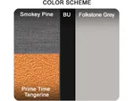 The fabric cubicle walls were thoughtfully selected to create a vibrant yet professional atmosphere. The Smokey Pine Grey establishes a refined and sophisticated workspace, while the Primetime Tangerine adds a modern, vibrant touch. Together, these orange and grey cubicles form a cohesive and stylish office color palette.