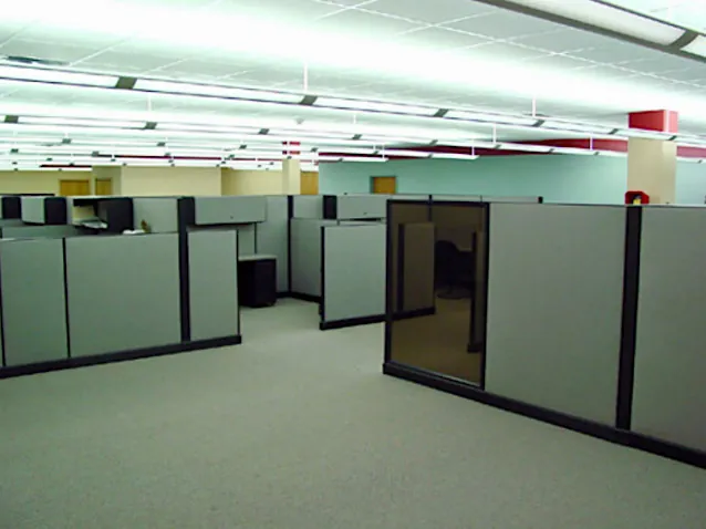 This corporate interior for MF Electronics features the O2™ office furniture system. You can see glass cubicle walls, a blend of office panel heights for workstation privacy, and various office storage solutions.