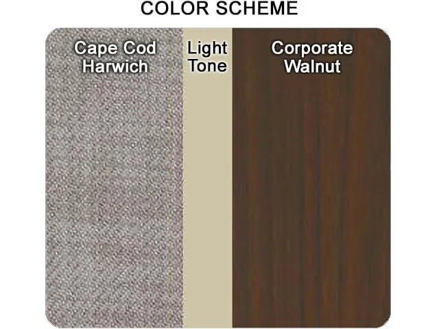 We created a straight & simple cubicle floorplan to accommodate 12 employees in modestly sized 5x5 cubicles. Each station consists of a laminate woodgrain 5-foot desk surface and a 3-drawer wood file cabinet. We specified AIS Divi modular systems, which offers an option for laminate wood cubicle panels and a unique faux segmented appearance that really makes this system stand out. 42”H partitions stay true to the open office concept, and bronze smoked plexiglass screens on top helps give each employee an extra 8”H of face-level sneeze protection.