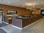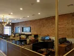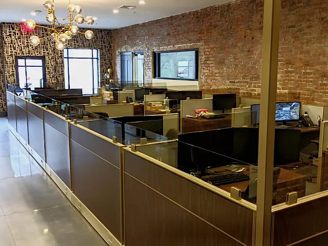 The existing space had great features to work with like exposed brick walls, polished stone floors, and recessed pot lights. They were planning to dress up the space with posh details like modern hanging light fixtures and edgy accent walls with graphic patterns. They wanted modern office cubicles to reflect the same sharp office aesthetic.