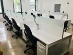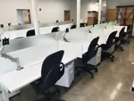 The client required business furniture for a new office space in Austin to accommodate 15 full-time and 3 semi-permanent staff members. They preferred a desk with electrical outlets and data access for each employee to power computers, phones, and other electronics with ease. They also wanted small meeting tables and chairs for informal huddle and conference space.