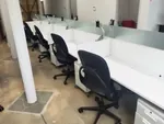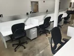 We furnished these office interiors with the affordable & flexible O2™ Cubicle System. The office square footage was just the right size for 6 x 6 cubicles for the FT employees. The L-shaped cubicles have 67”H desk partitions for visual/audio privacy required in solo work. Lockable office storage containers include two under-desk filing cabinets and an overhead storage cabinet.