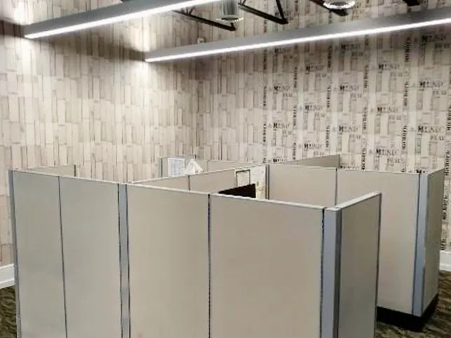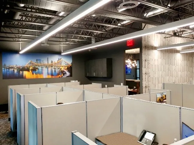 We did an office space planning test fit to determine optimal cubicle sizes for their team of 12 employees and devised a space efficient office layout with a blend of 6x5 and 5x5 cubicles.