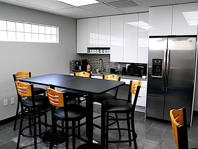 We provided 4 sets of pub height tables and chairs from The Benedict Collection for the office breakroom furniture.