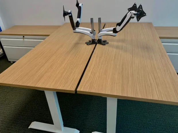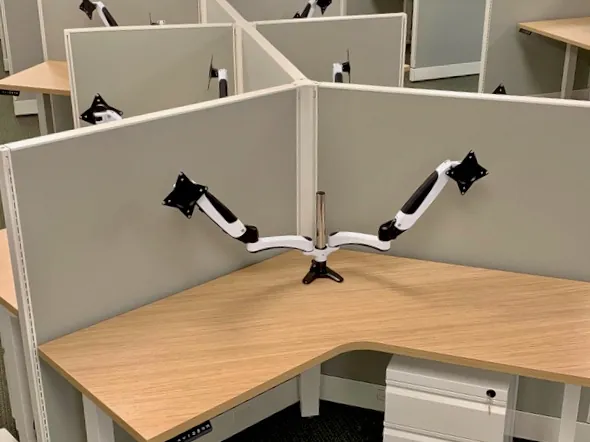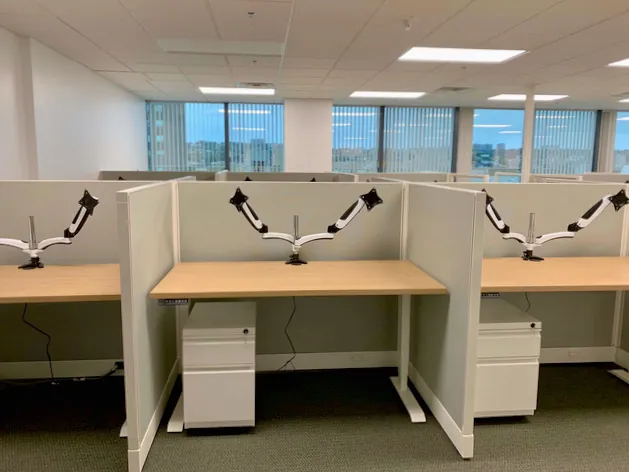 Being an employee benefits firm, they take the health & wellbeing of their own employees seriously. When our interior office designer started working with them on their NJ office, office ergonomics was a key factor. It was important that all 24 cubicle workstations include an ergonomic sit and stand desk and desk mounted monitor arms, along with a small file cabinet on wheels.