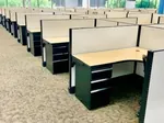 The client selected cream cubicle fabric, maple desk top, and black trim paint – all part of the money-saving Budget Program of cubicle color schemes.