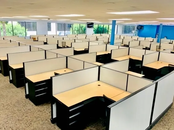 This cubicle installation was phase 1 of a large-scale commercial office furniture project that ran through the summer and fall of 2019. They acquired a brand-new office space in Orange County, CA and worked with our office space designer to deliver corporate furniture solutions with a contemporary office design that fit a midrange furniture budget.