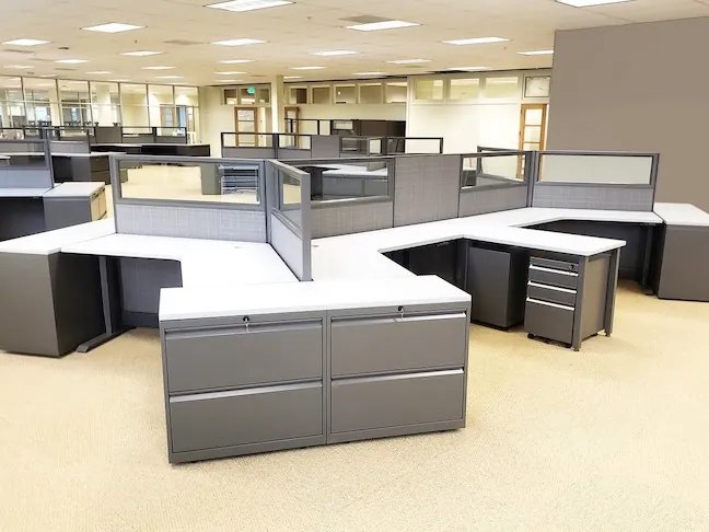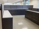 We strategically placed 67”H fabric partition walls for office filing cabinet storage. The visual barrier of the L-shaped tall cubicle walls provides a clean appearance and extra privacy for the HR & accounting documents contained within the cabinets.