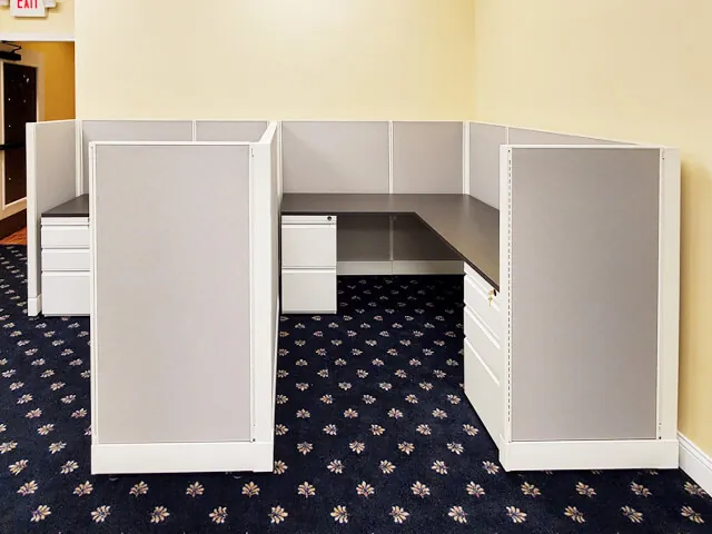 These modern office cubicles were purchased from our online shop, to furnish our client’s open plan office. Our customer opted for one of our office workstation desks of which the convenient 53’ cubicle height of the office cubicle walls provides a good balance between privacy and collaboration between colleagues.