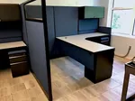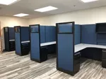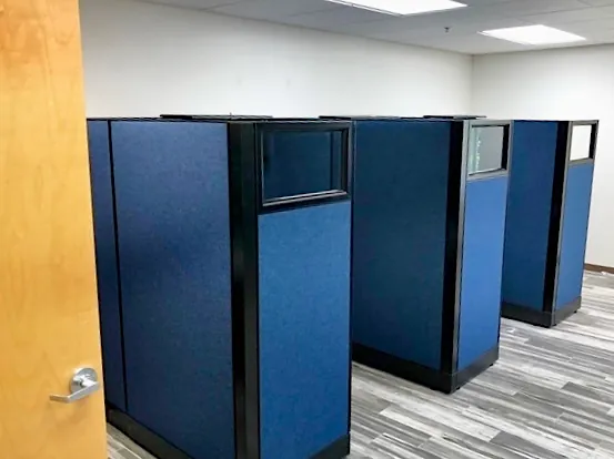 The client wanted to furnish 4 areas in their West Palm Beach office space with private cubicles that could facilitate focused work, but also enable moderate collaboration. With O2™ Corporate Office Furniture modular systems our office interiors team designed L-shaped cubicles with 67” tall cubicle walls for divider panels between stations. We helped face to face connections by adding cubicle windows at the entry to each work area and aligning the desk setup orientations in the cubicle layout.