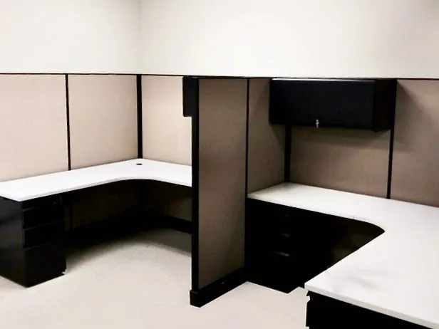 In this project we revisited a previously furnished office space we’d done with Tray in the past. Ever growing and expanding, they needed to add 4 more bullpen cubicles in an open area of the office floor. By using a box-shaped cubicle arrangement and using a combination of existing walls and high cubicle walls, we created the feeling of a shared private office environment for these employees.