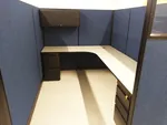 We created a cubicle color scheme from the O2-Style finish program, which includes a dark blue cubicle fabric that’s a close match to the company’s corporate logo.