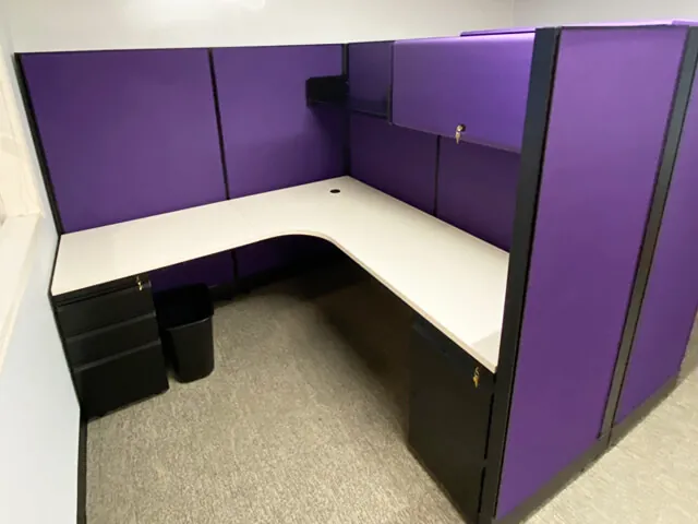 Tall cubicle walls offer the ideal amount of privacy required for focused work and were aptly selected to configure these office workstations.