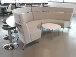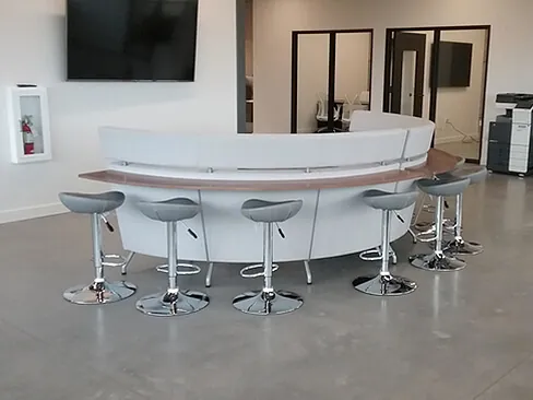 They were looking for a luxury office furniture style with an affordable price tag to furnish their client facing workspace. They wanted an impressive modern reception desk, a tech-savvy media lounge for scrolling through listings on the big screen, and small meeting room furniture for a few enclosed offices when it’s time for a client to sign on the dotted line.
