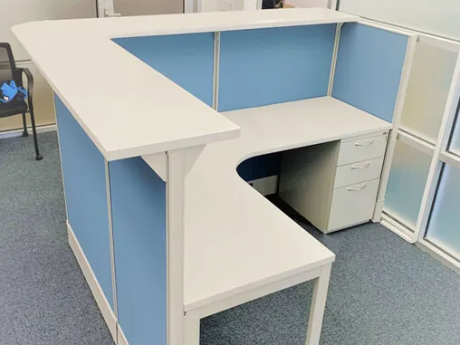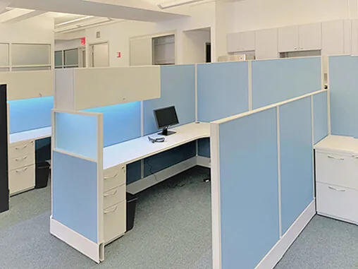 With a new office in Midtown, Collins chose us from their candidates for office design companies that sell office furniture in New York City. Being engineers & designers, Collins already had their own clear plan for an office layout for eight 6’x8’ L shaped workstations and a matching reception station for visual continuity. They needed us to provide the right cubicle system and get it done.