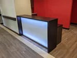 The office space planners on our team really enjoyed developing the layout for full office furnishings throughout this facility. They started with a custom reception desk at the main entrance – there’s nothing quite as impressively eye catching as a reception desk with lights built into the front!