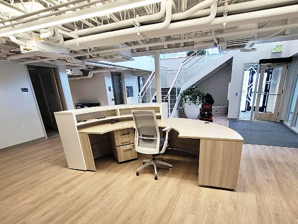 This office reception desk design provides a truly warm welcome to all visitors and leaves them with the desired long-lasting impression of their office space in Denver.